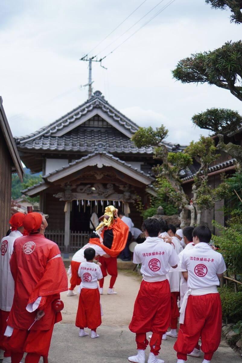 麒麟獅子、神輿、榊、こども神輿、多くの方々が暑い中がんばっていました。