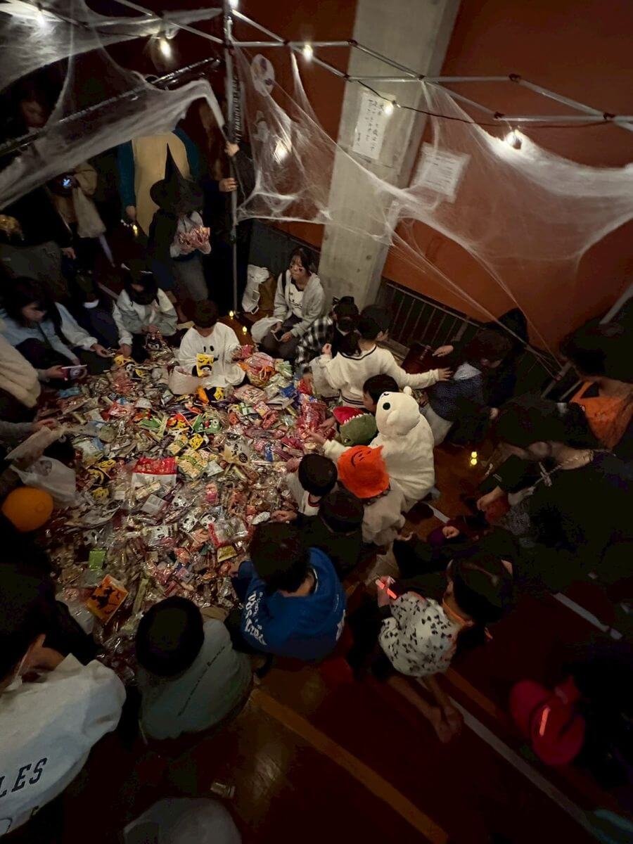 最後は、体育館でもらってきたお菓子を広げてみると、すごい量となっていました(*^^*)